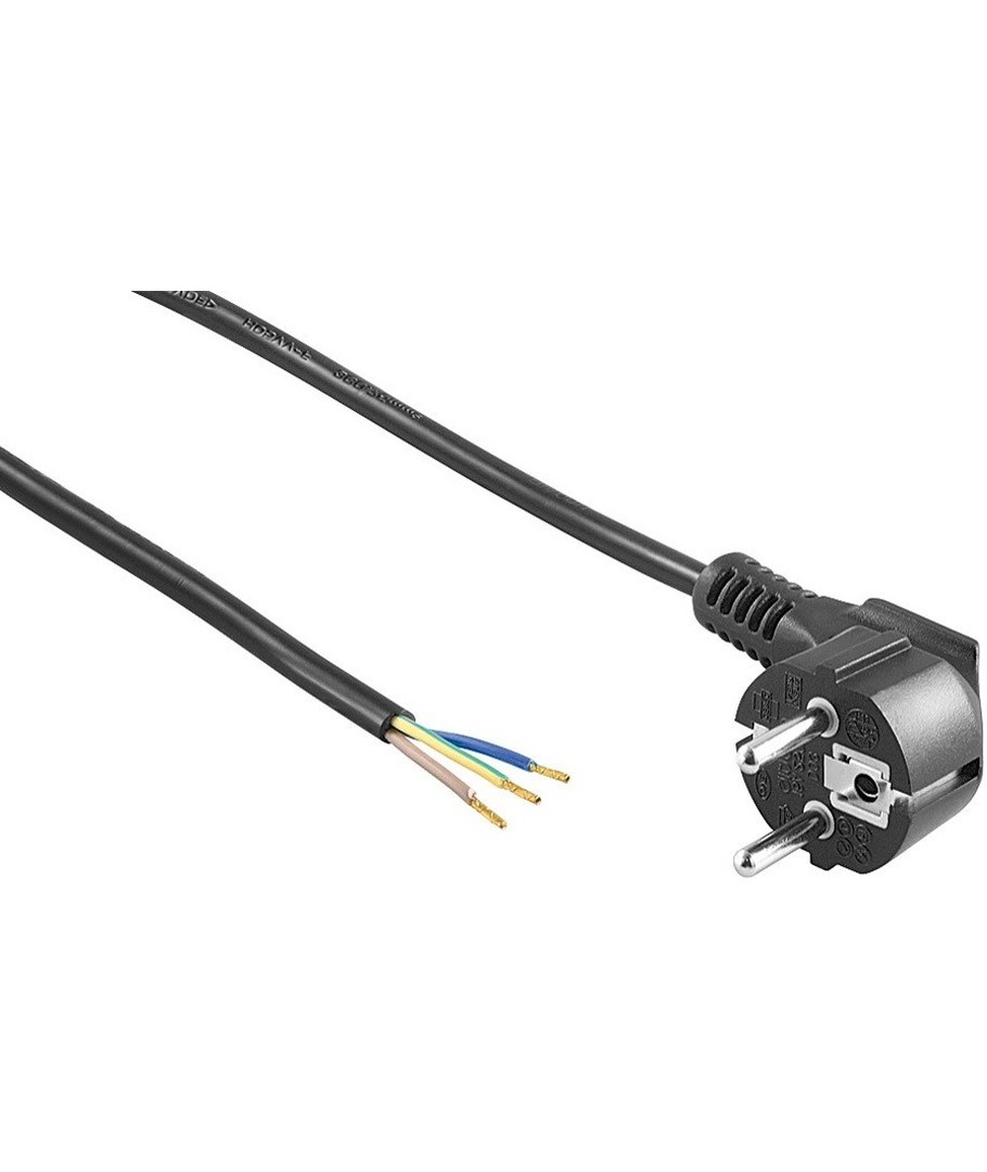 1,5 meter sort strømkabel med schuko stik og afisolerede ledninger.