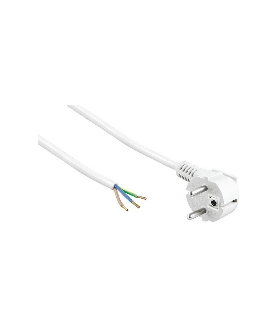 1,5 meter hvidt strømkabel med schuko stik og afisolerede ledninger.