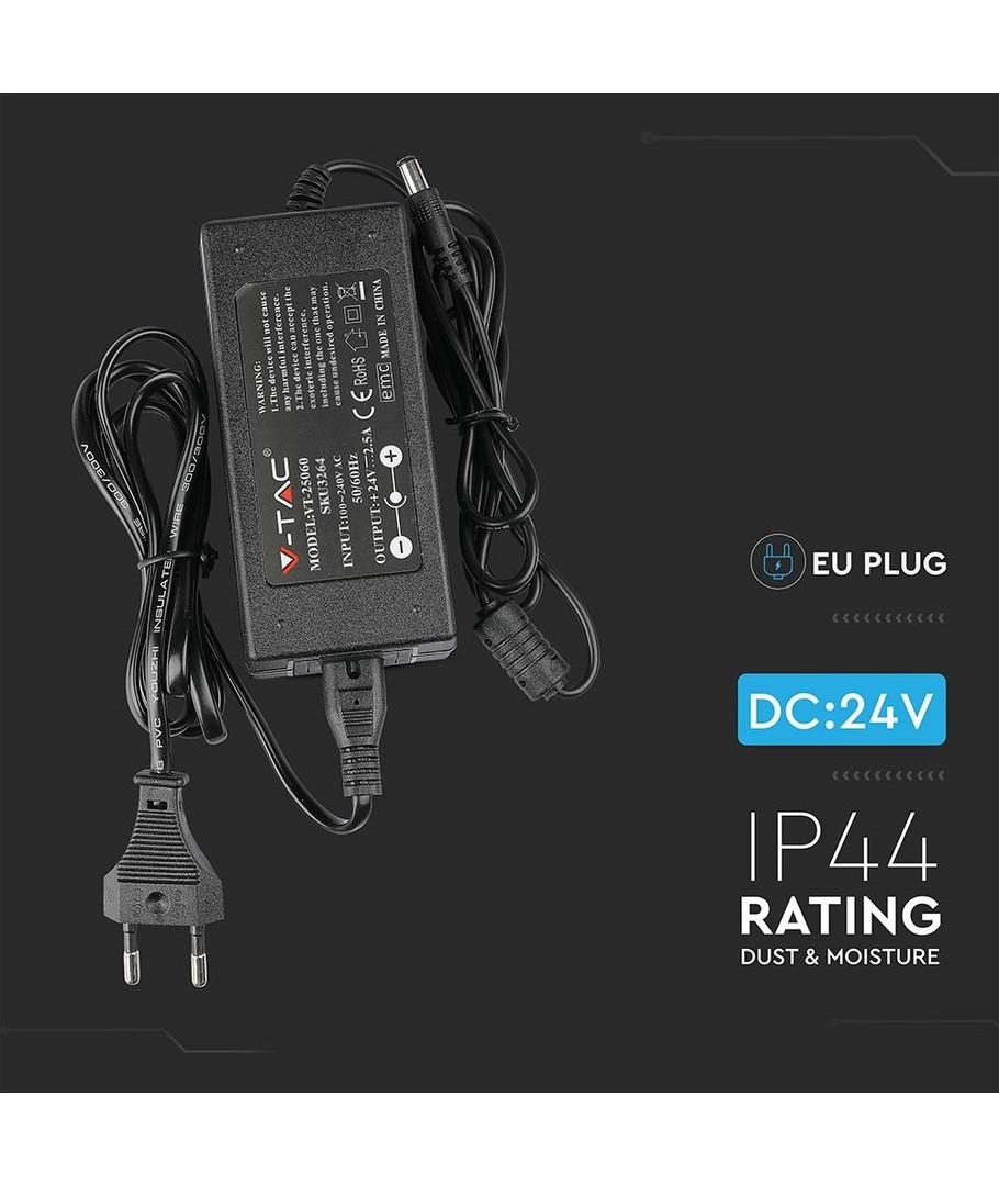 24V / 2,5A strømforsyning.