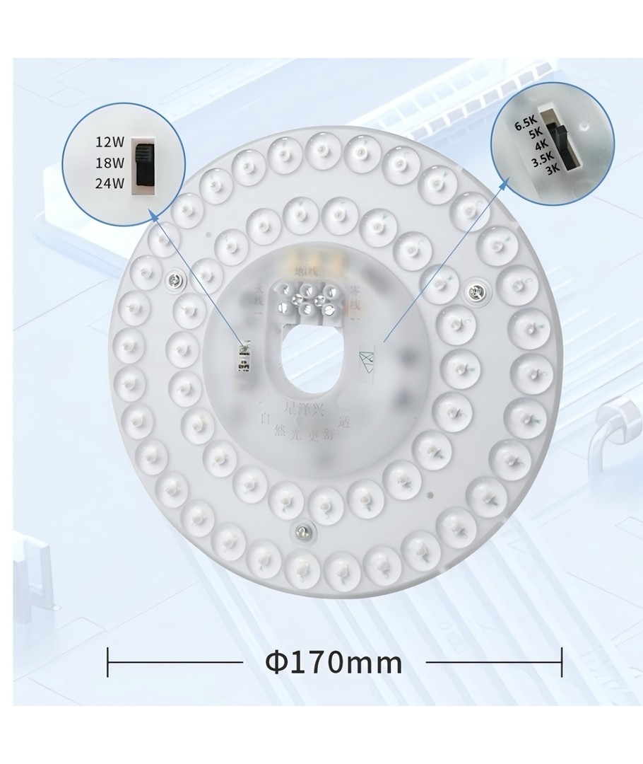 Med en diameter på 17 cm og en højde på kun 12 mm, passer denne LED indsats perfekt til forskellige typer af armaturer. Den sikrer ikke kun et naturligt lys, der flot og ægte viser alle farver, men tilbyder også fleksibiliteten ved valgfri CCT, så du kan tilpasse lysfarven efter behov.