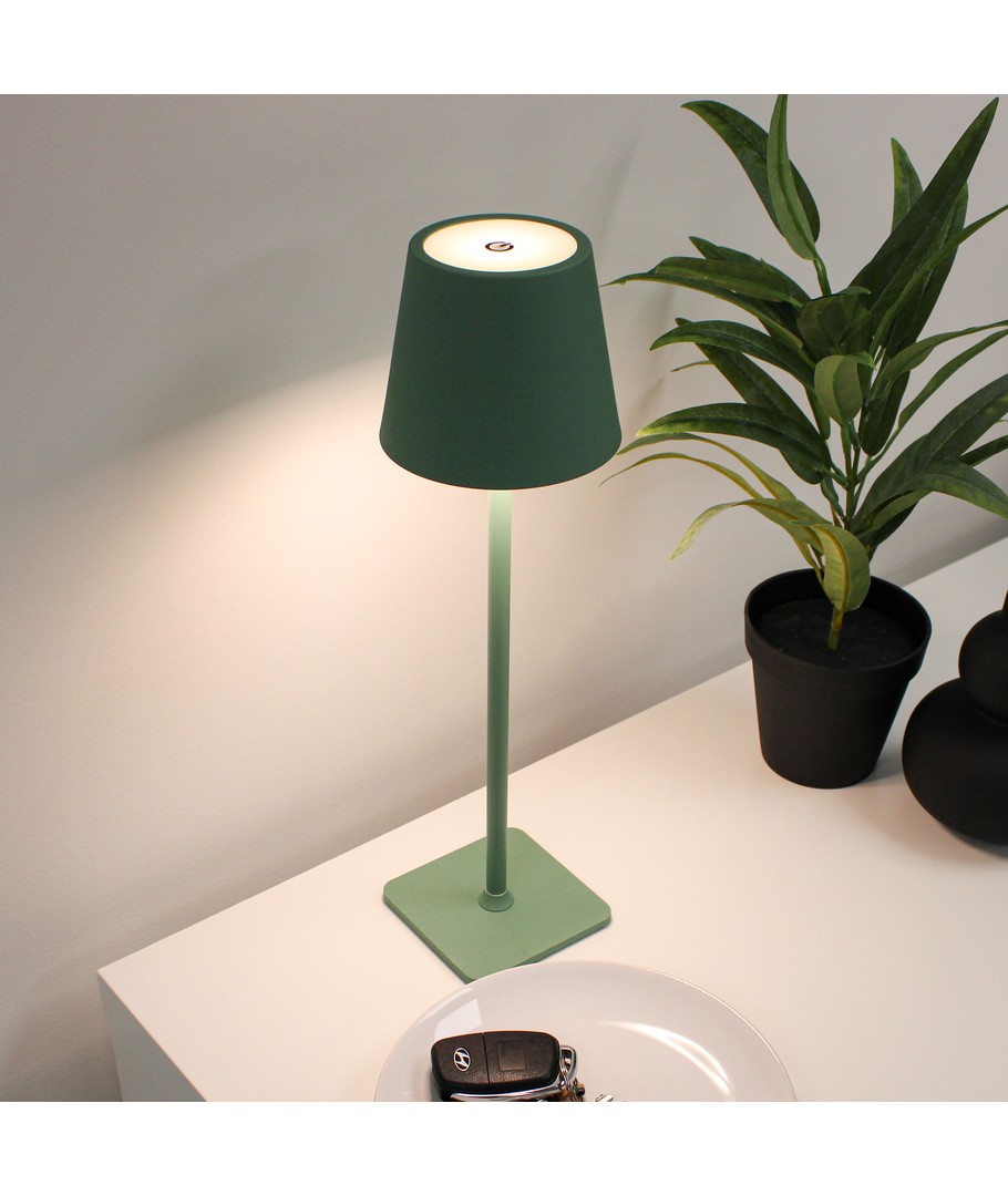 Oplev en alsidig og stilfuld belysningsløsning med denne opladeledige LED bordlampe, der passer perfekt til både indendørs og udendørs brug. Lampen er designet i en smuk grøn farve og giver dig mulighed for at skabe den rette atmosfære med sin touch-dæmpbare funktion. Uanset om du ønsker en hyggelig belysning i stuen eller praktisk lys på terrassen aftenstunder, er denne lampe det ideelle valg.