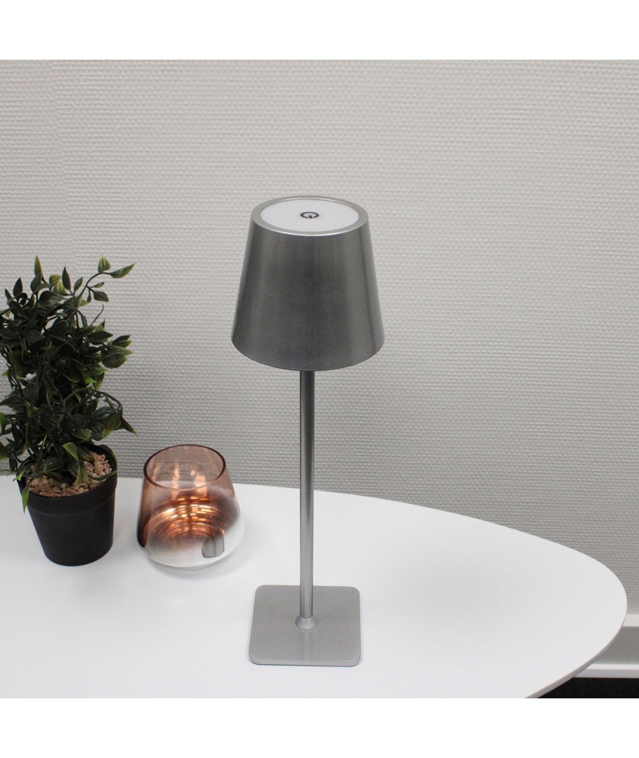 Bring elegance og funktionalitet til dit hjem eller udendørsområde med denne opladelige LED bordlampe. Designet i en stilfuld sølvfarve, er denne lampe en ideel løsning for dem, der søger fleksibel belysning med moderne funktioner.