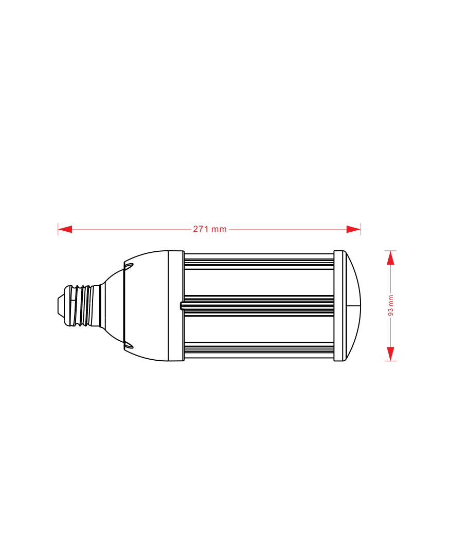 Pærens dimensioner er 271 x Ø93 mm, hvilket gør den velegnet til en bred vifte af lamper og armaturer.