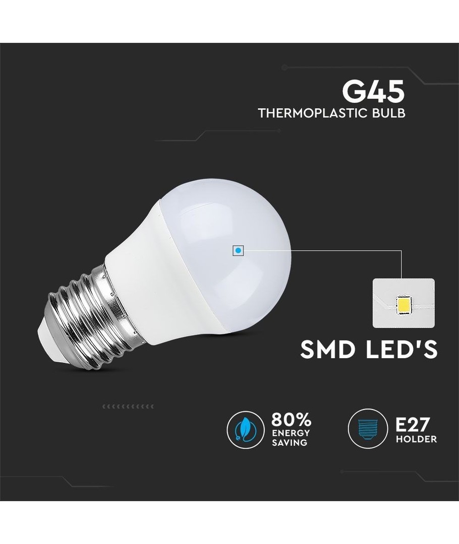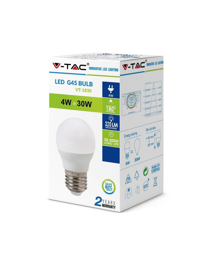 Følger i pakken: 1 x LED Pære, 1 x Driver. Der er ingen kviksølv i produktet - Det er miljøvenligt. V-Tac 4W LED pære er en energibesparende pære, der erstatter den traditionelle 30W glødepære.
