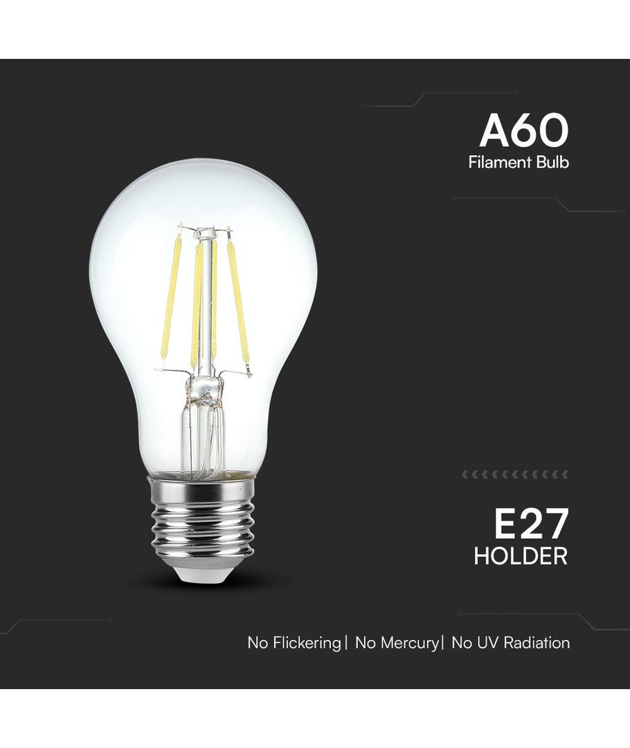 V-Tac Kultrådspære 4W E27 - 6500K, A60 er en energieffektiv lyskilde, der kombinerer moderne LED-teknologi med klassisk design, perfekt til både hjemmet og erhverv.