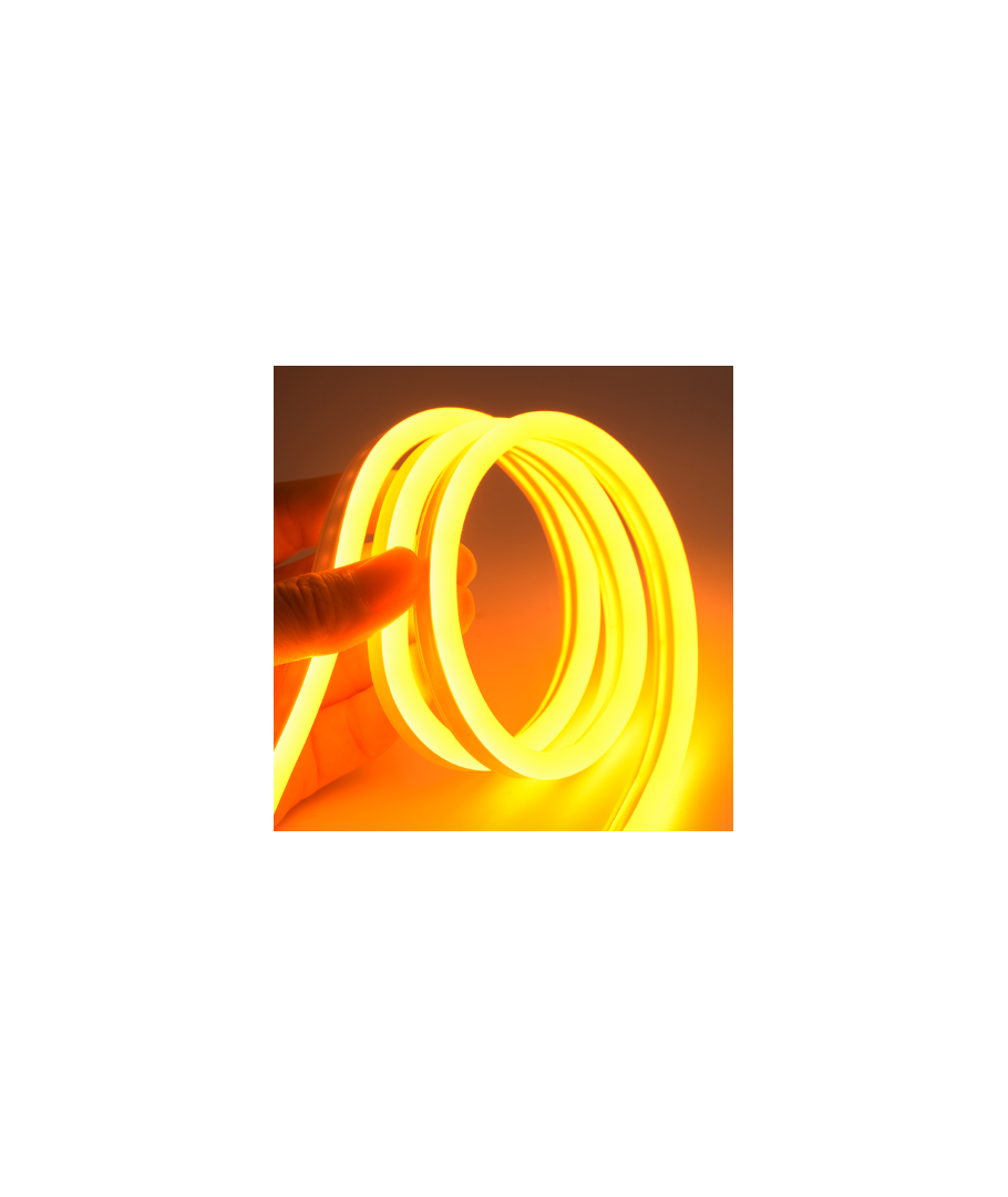 Med en stilren gul farvetone tilføjer denne LED strip et varmt og indbydende skær til omgivelserne. Fleksibiliteten af neon flex designet gør det nemt at installere i forskellige konfigurationer, uanset om det er til dekorative konturer eller mere praktisk belysning.