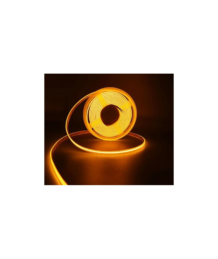 Denne COB LED strip giver et jævnt og uafbrudt lys uden synlige mellemrum, takket være de 320 LED'er pr. meter. LED strippen giver et flot ravfarvet lys, som er ideel til både dekorativ og praktisk belysning.