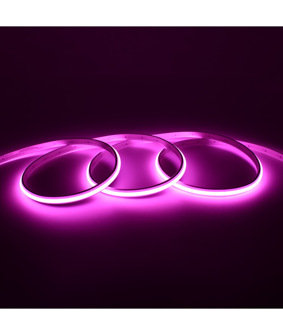 Enkeltfarvet pink COB LED strip med 240 LED'er per meter.