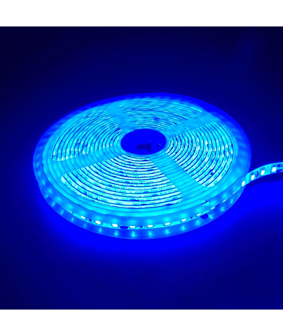 Skab en stemningsfuld belysning med denne Blå 10W/m LED strip på 5 meter, der har en klarere farve end RGB.