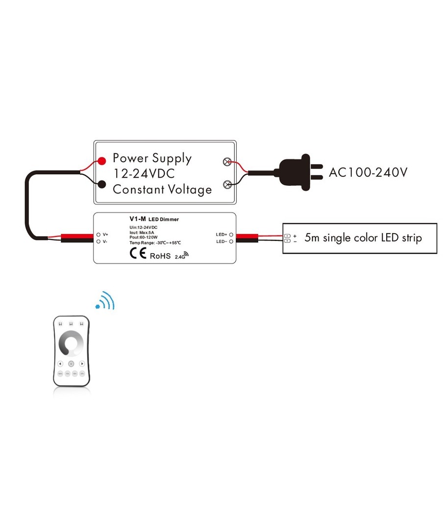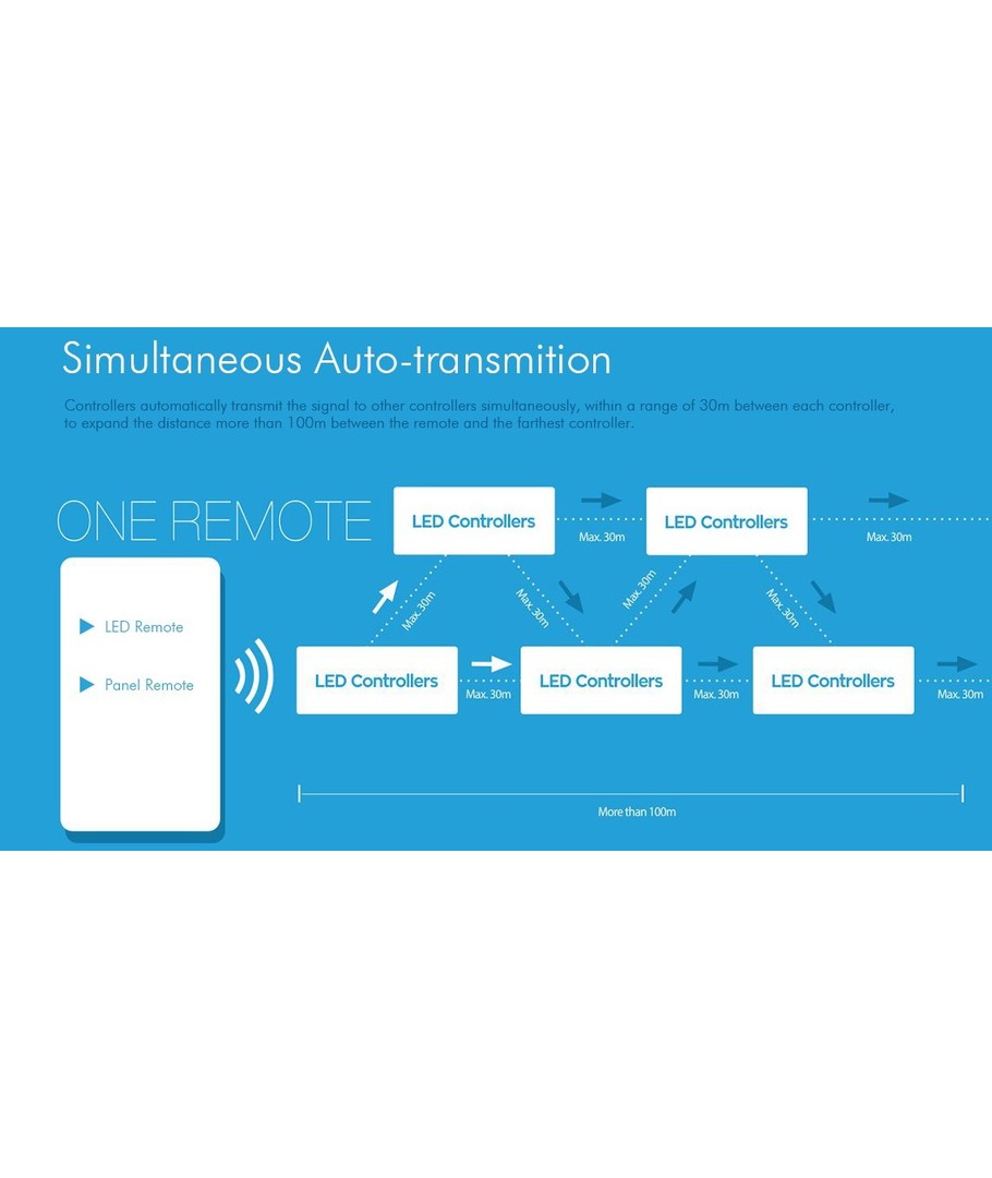 Styr 12V, 24V, 230V & dæmpning, CCT, RGB – alt med samme fjernbetjening.