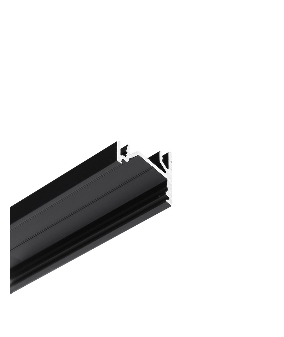 2m aluprofil CORNER12.V2 EF/U er en sort anodiseret LED skinne designet til hjørner.