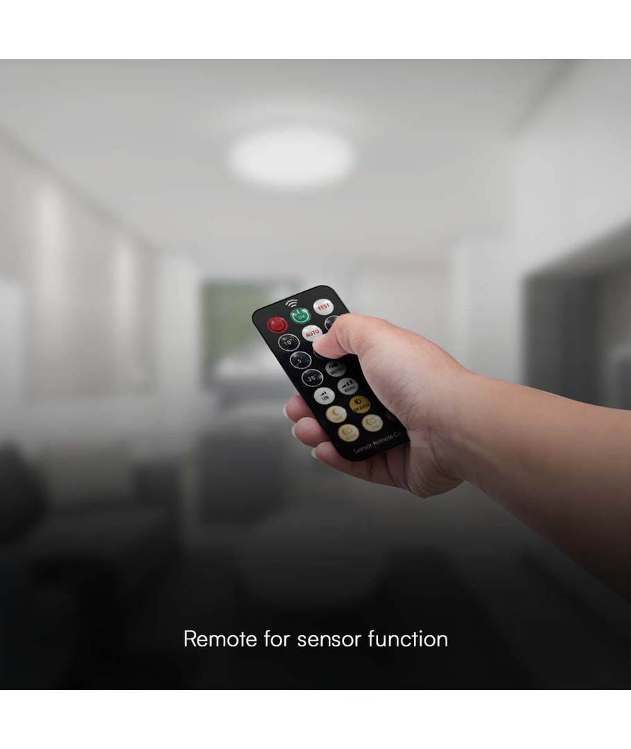 Lampen kan styres via medfølgende fjernbetjening, hvor det er muligt at justere på de forskellige indstillinger.