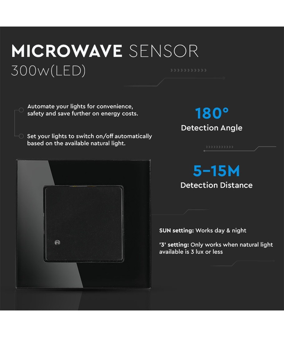 Den vægmonterede mikrobølgesensor er den perfekte løsning til automatisk lysstyring i dit hjem eller kontor, der gør det nemt at optimere energiforbruget og komforten.