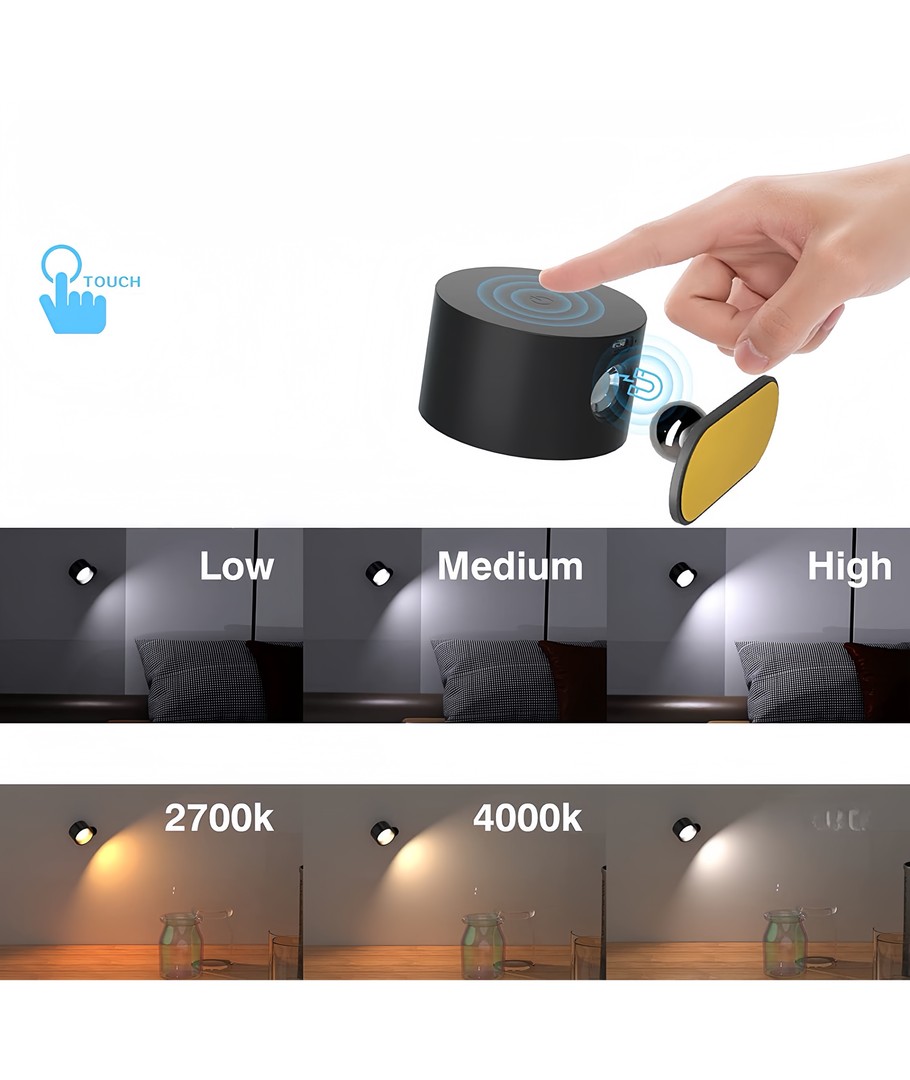 Praktisk genopladelig væglampe CCT - perfekt til indendørsbrug.