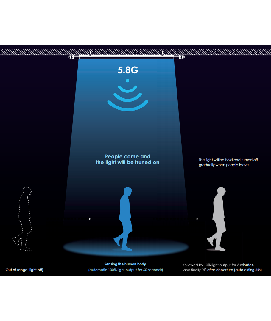 Når sensoren registrerer bevægelse, er lyset tændt i 60 sekunder.