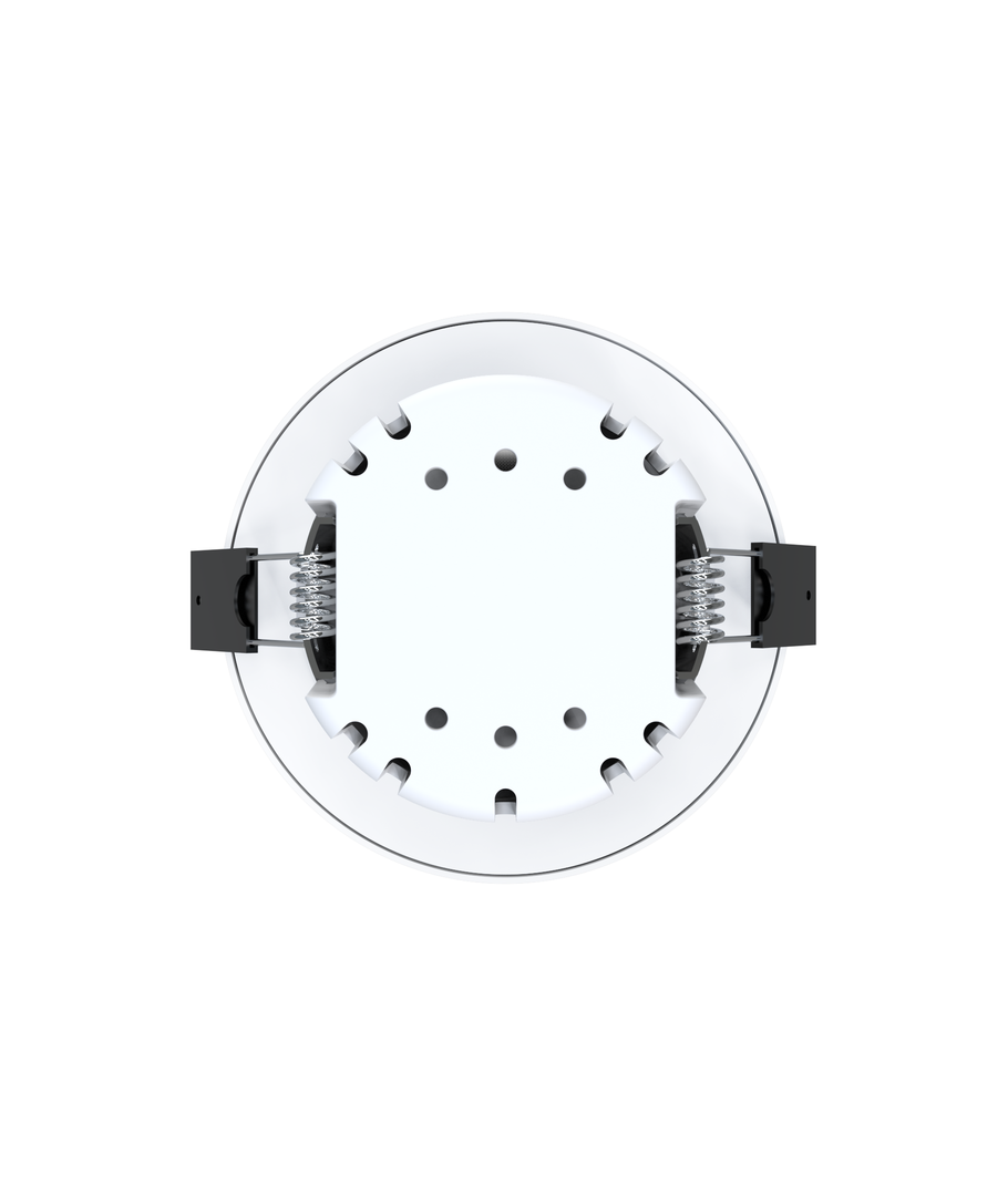 Hul: Ø7,5 cm, Mål: Ø8,4 cm, Sort reflektor, hvid kant