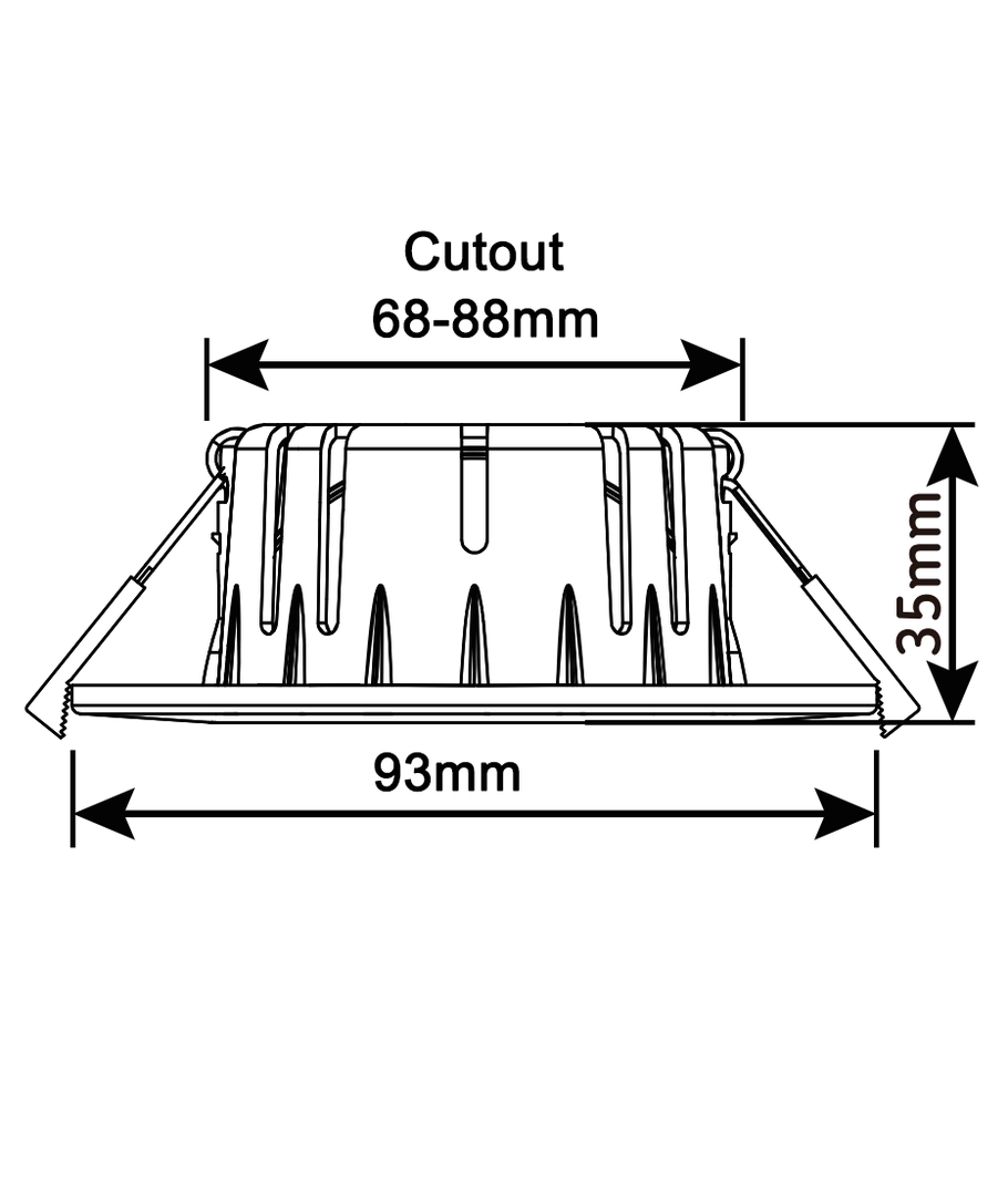 Dimensionerne på spottet (35 x Ø93 mm) samt hulstørrelsen (68-85 mm) gør det til et alsidigt valg, der passer til mange installationsbehov. Derudover kommer den med en elegant hvid kant, der passer ind i de fleste indretninger.