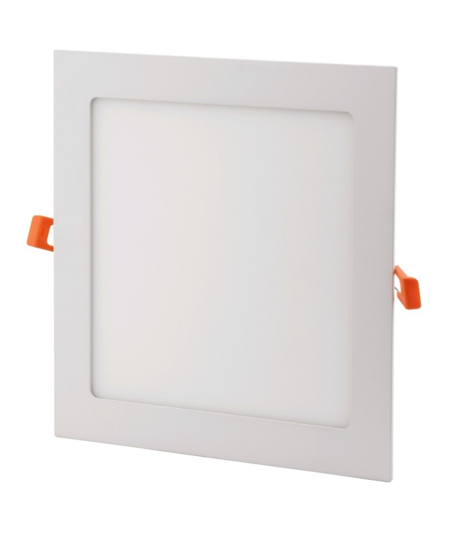 Firkantet 18W LED indbygningspanel med hvid kant.