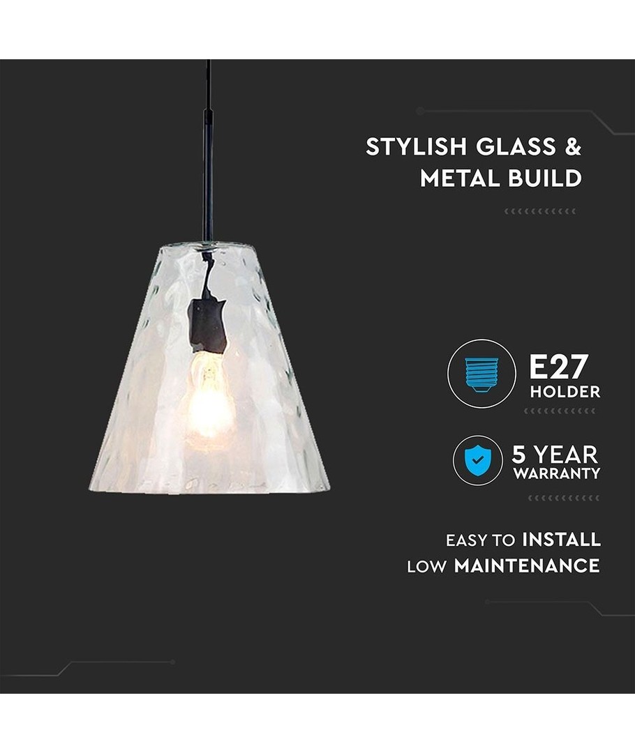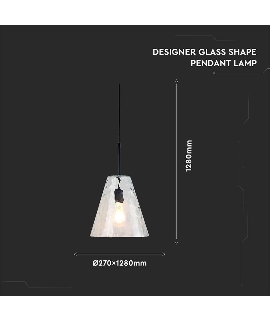 Den V-Tac moderne pendellampe kombinerer et stilfuldt udseende med praktisk anvendelighed, hvilket gør den til et ideelt valg for moderne hjem. Dens kegleformede glas giver en æstetisk tiltalende effekt, der både kan forbedre og supplere dit rum. Med en diameter på Ø27 cm og en højde på 280 mm, har lampen en ideel størrelse til at passe ind i forskellige indretningsstile, fra minimalistisk til skandinavisk.