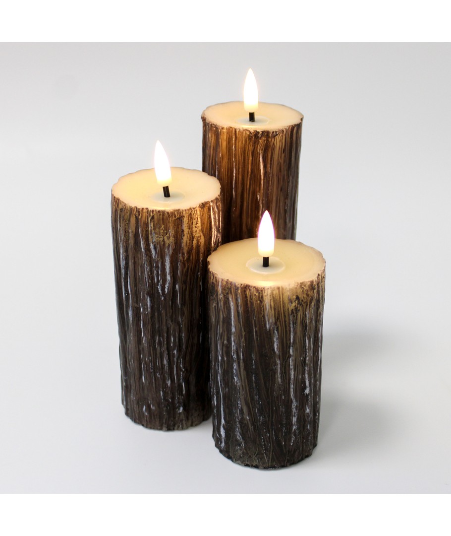 Skab en hyggelig og varm atmosfære i dit hjem med vores LED Træ-look bloklys sæt, der kombinerer elegance og sikkerhed med en realistisk flammeeffekt.