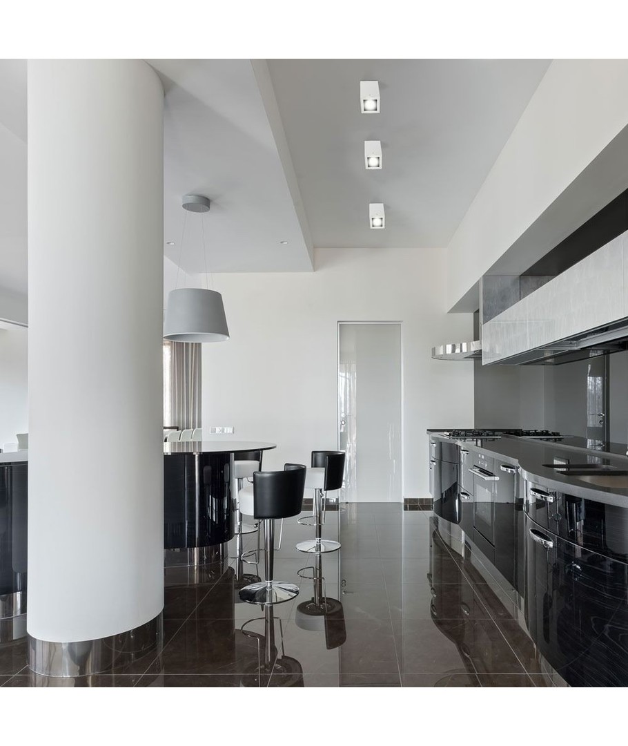 Hvid firkantet loftslampe.