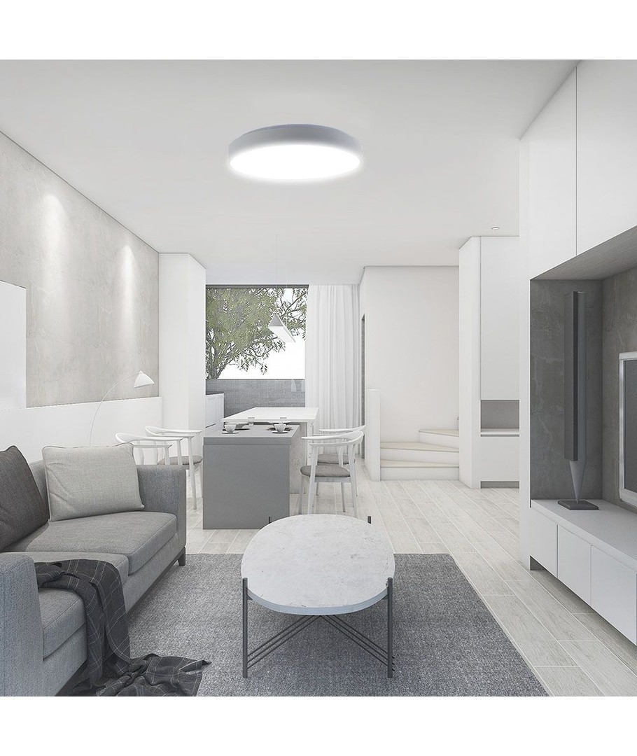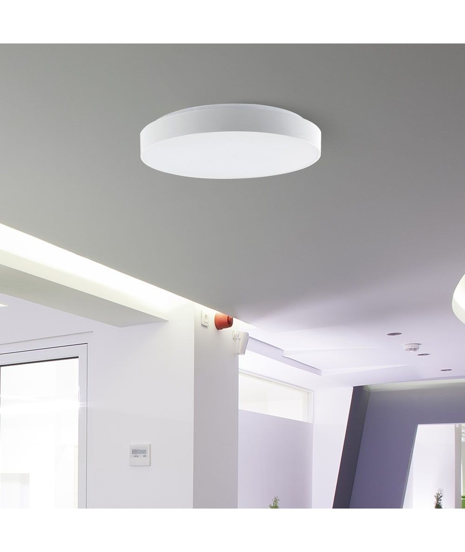 Med en diameter på 40 cm og en slank profil på 395 x 66 mm, er denne lampe perfekt til moderne interiørdesign. Dens enkle udseende gør den ideel til en række forskellige rum, fra kontorer til boliger.