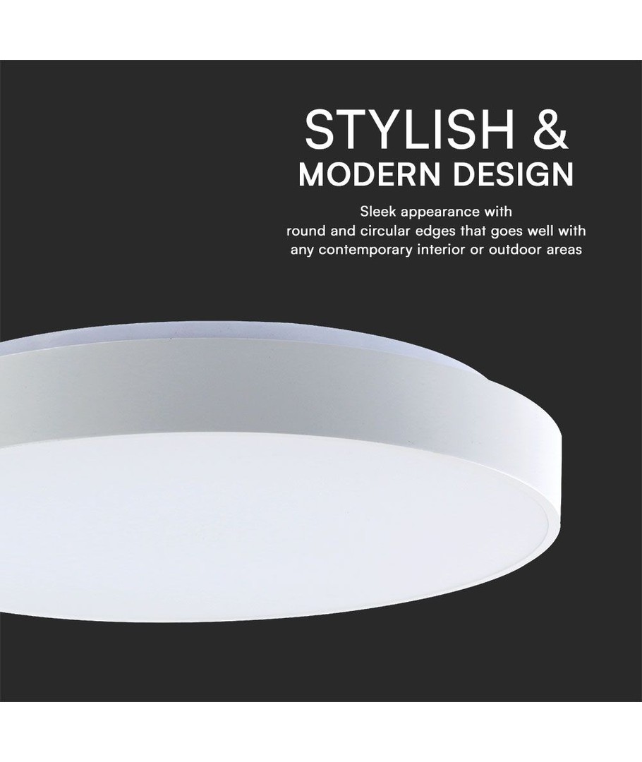 V-Tac Rund 40W LED loftslampe kombinerer energieffektivitet, moderne æstetik og brugervenlighed, hvilket gør den til en perfekt belysningsløsning for alle, der søger fleksibilitet og stil.