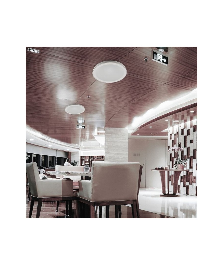 Forbedr dit rum med denne 40W dæmpbare designer loftlampe, der kombinerer stilfuldt design med praktisk funktionalitet. Med en diameter på 40 cm og en slank profil på 75 mm i højden, passer denne lampe perfekt ind i moderne hjem.