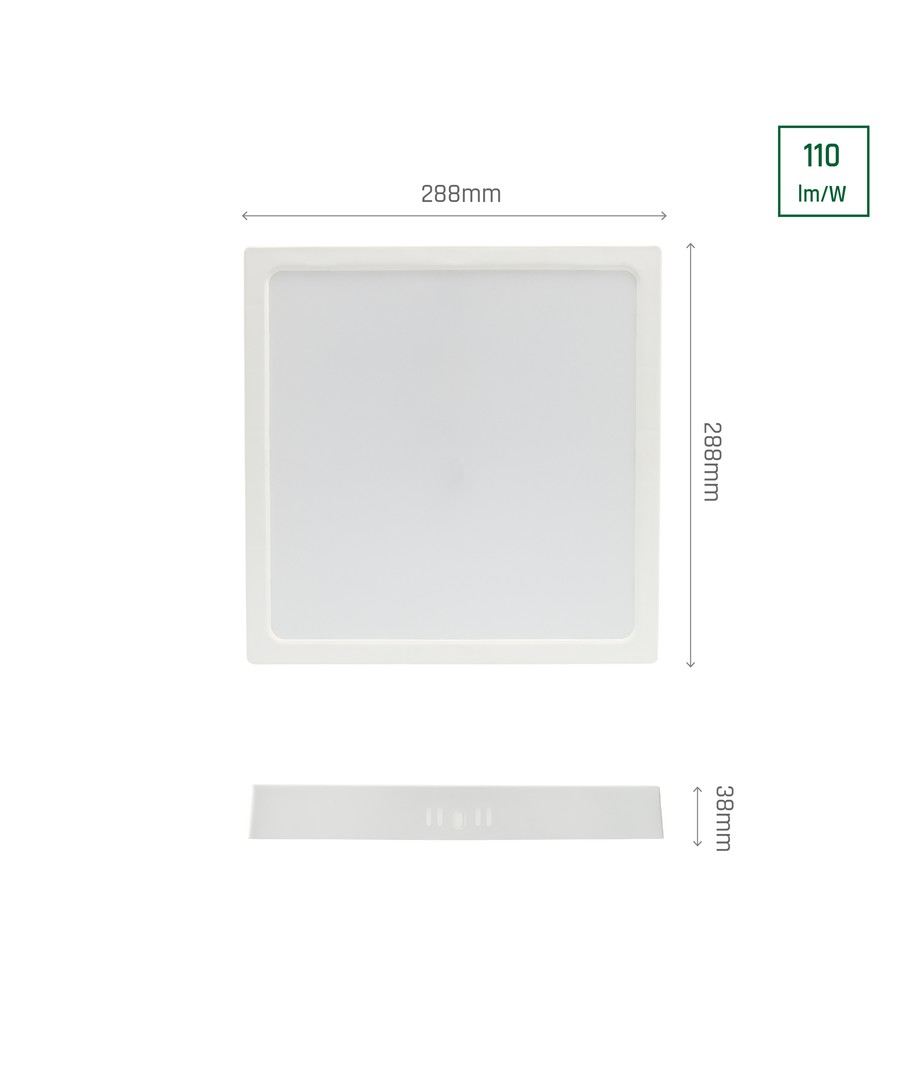 Den diskrete og elegante loftslampe er optimalt designet til at levere en effekt på 24W, hvilket gør den til et miljøvenligt valg for både hjemmet og kontoret. Med en dimension på 29 x 29 cm og en højde på kun 3,8 cm, passer den perfekt ind i moderne interiører uden at optage unødig plads.