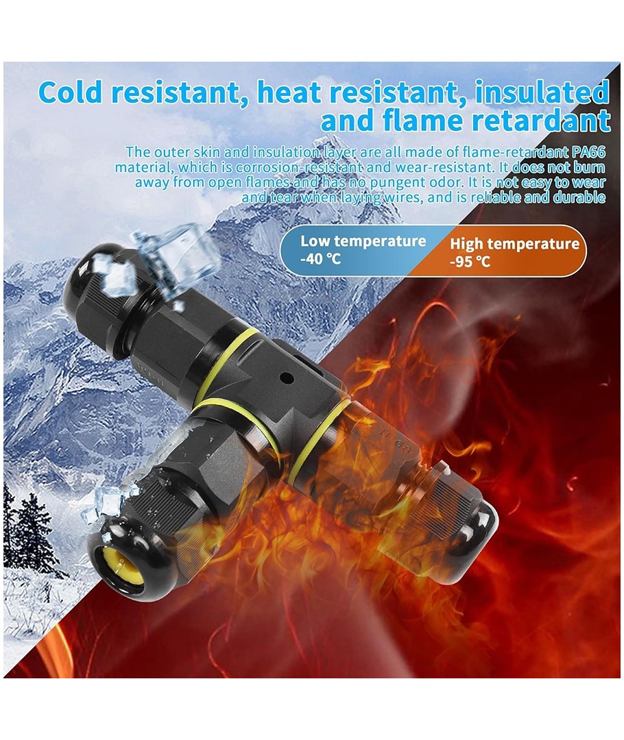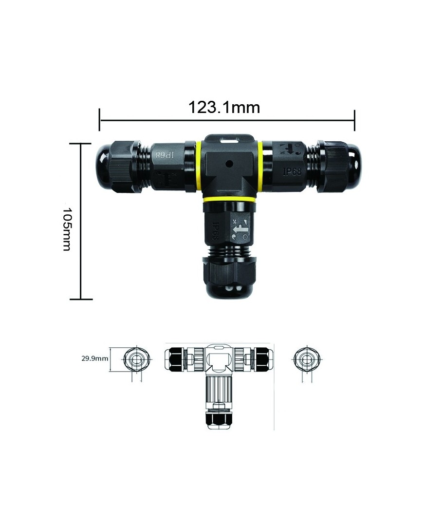 Oplev en pålidelig og nem løsning til at forbinde ledninger med vores IP68 vandtætte T-samledåse. Denne enhed er designet til at sikre, at dine elektriske forbindelser forbliver sikre og uafbrudte, selv i de mest udfordrende miljøer.
