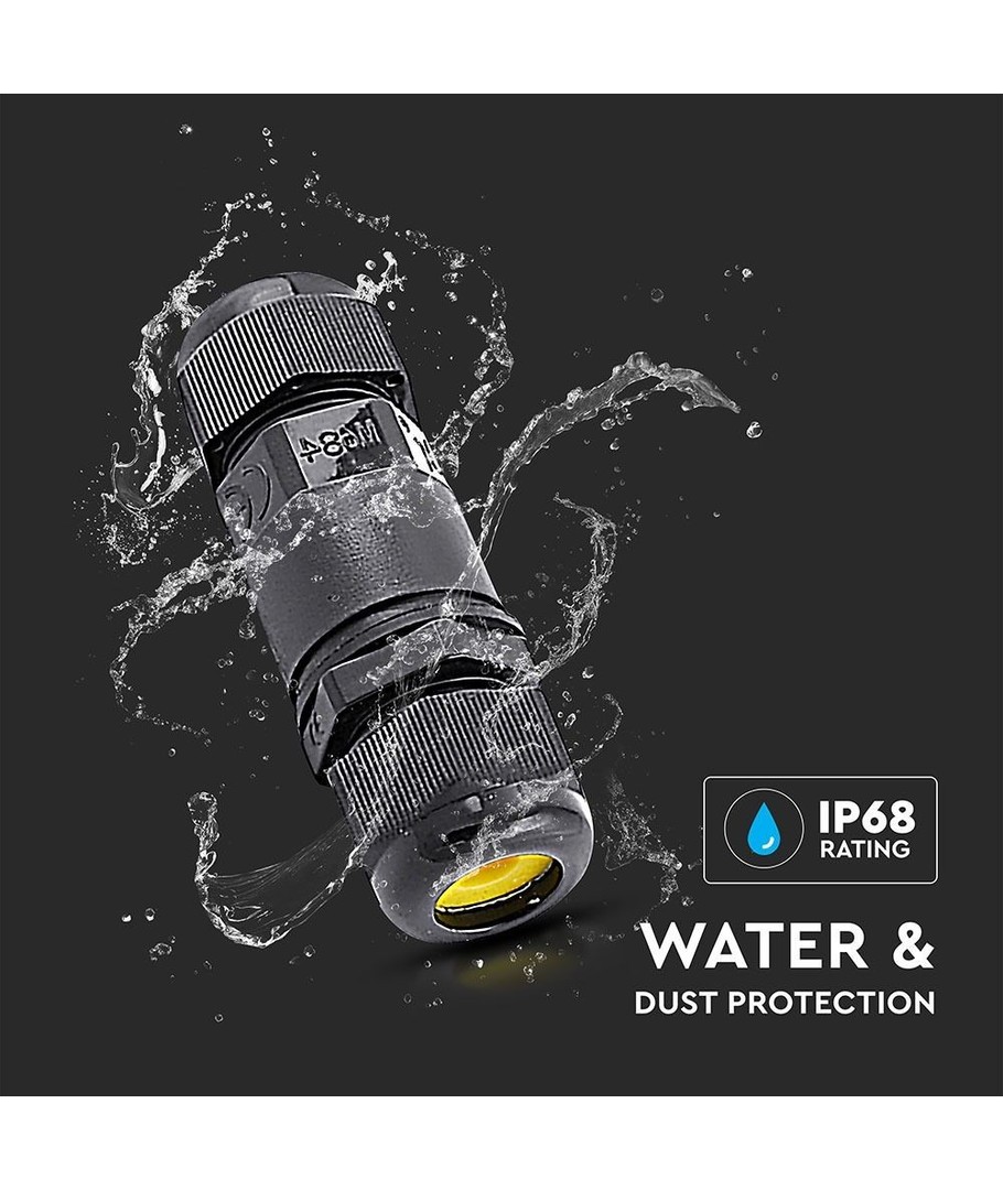 Samlet set, med sin robuste konstruktion og høje niveau af beskyttelse, giver denne V-Tac sorte runde samledåse en exceptionel løsning for dem, der har brug for en pålidelig og vandtæt metode til ledningssamling. Uanset om det er til privat brug eller i en industriel setting, sikrer dette produkt holdbarhed og ydeevne, der kan stå tidens test og de krav, miljøet stiller. Skab sikkerhed i dine elektriske installationer med denne effektive løsning.