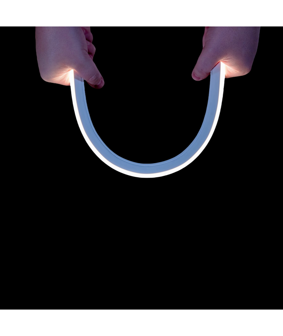 Denne 10x10 mm Neon Flex LED-strip giver et blødt og ensartet lys uden synlige dioder - perfekt når du vil skabe rene lyslinjer med et eksklusivt udtryk. Brug den til alt fra facader og skilte til trapper og dekorative former på vægge.