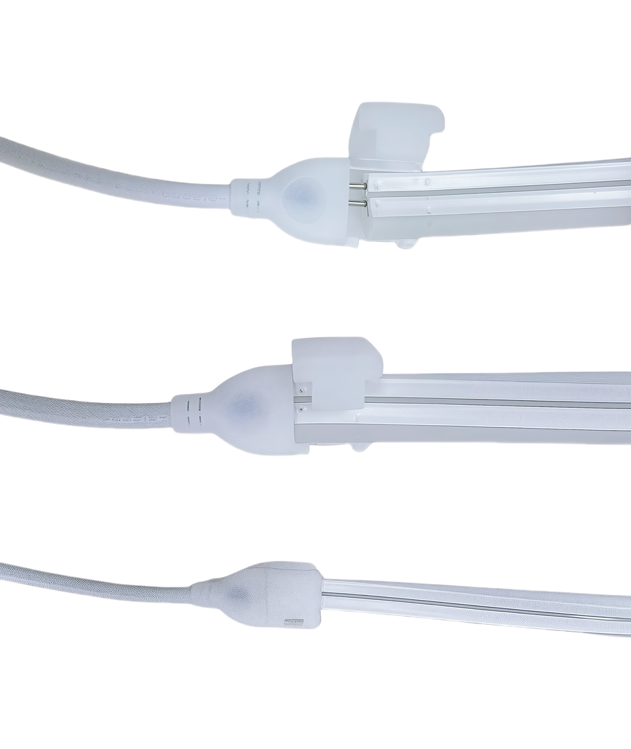Samlingerne ved stik og endeprop skal tætnes med klar silikone for at opnå IP67 inden produktet tages i brug.