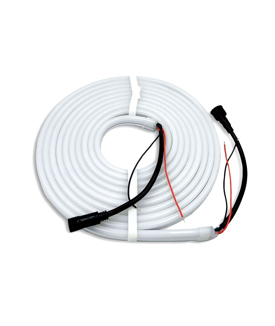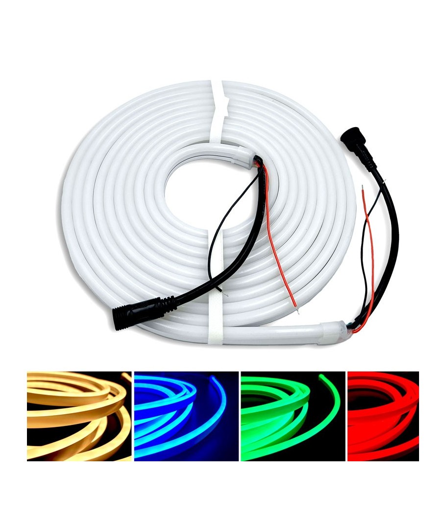 Oplev en levende belysning med vores RGB+WW Neon Flex Strip, perfekt til både indendørs og udendørs installationer. Denne fleksible lyskæde er det ideelle valg for dem, der ønsker at skabe en farverig og atmosfærisk belysningseffekt i ethvert miljø.