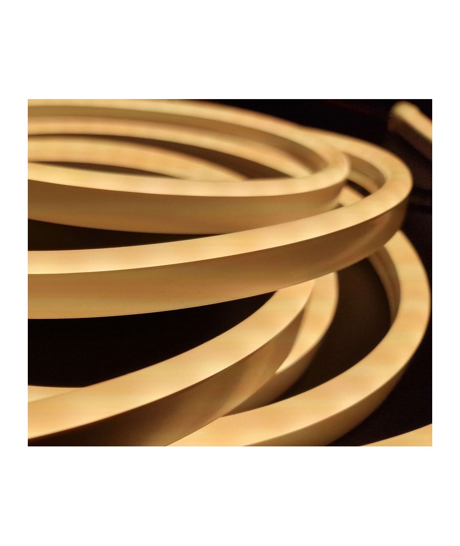 Neon flex strippen kommer med en kompakt dimension på 8 x 16 mm, hvilket gør den let at integrere i enhver installation uden at det er påtrængende. Med en IP65-klassificering er den designet til at modstå vandstænk og regn, hvilket gør den velegnet til brug udendørs.