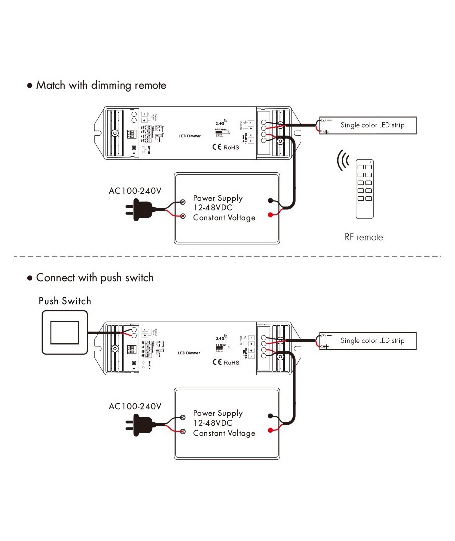 Styr 12V, 24V, 230V & dæmpning, CCT, RGB – alt med samme fjernbetjening.