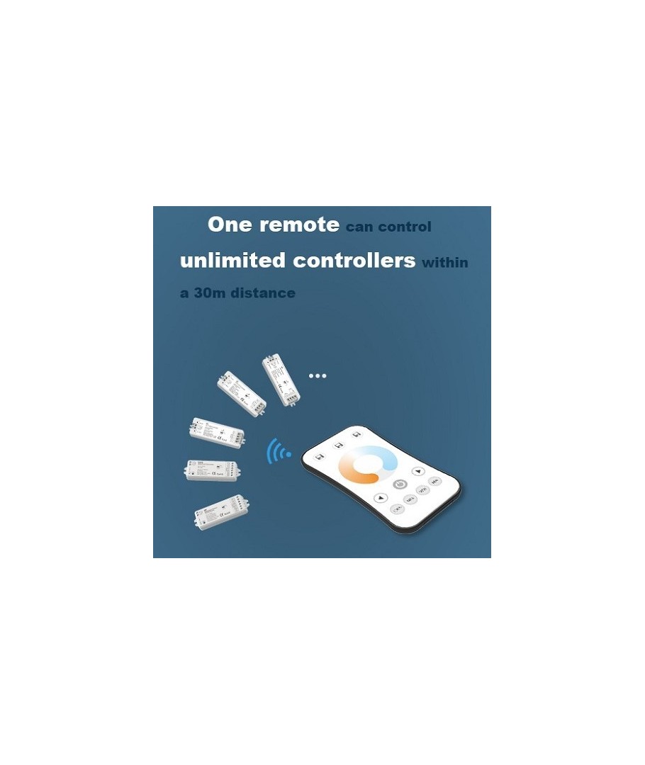 Styr 12V, 24V, 230V & dæmpning, CCT, RGB – alt med samme fjernbetjening.