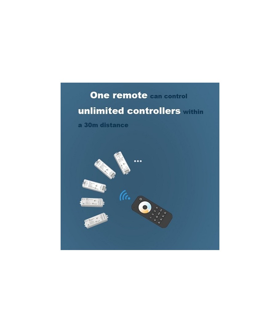 Styr 12V, 24V, 230V & dæmpning, CCT, RGB – alt med samme fjernbetjening.