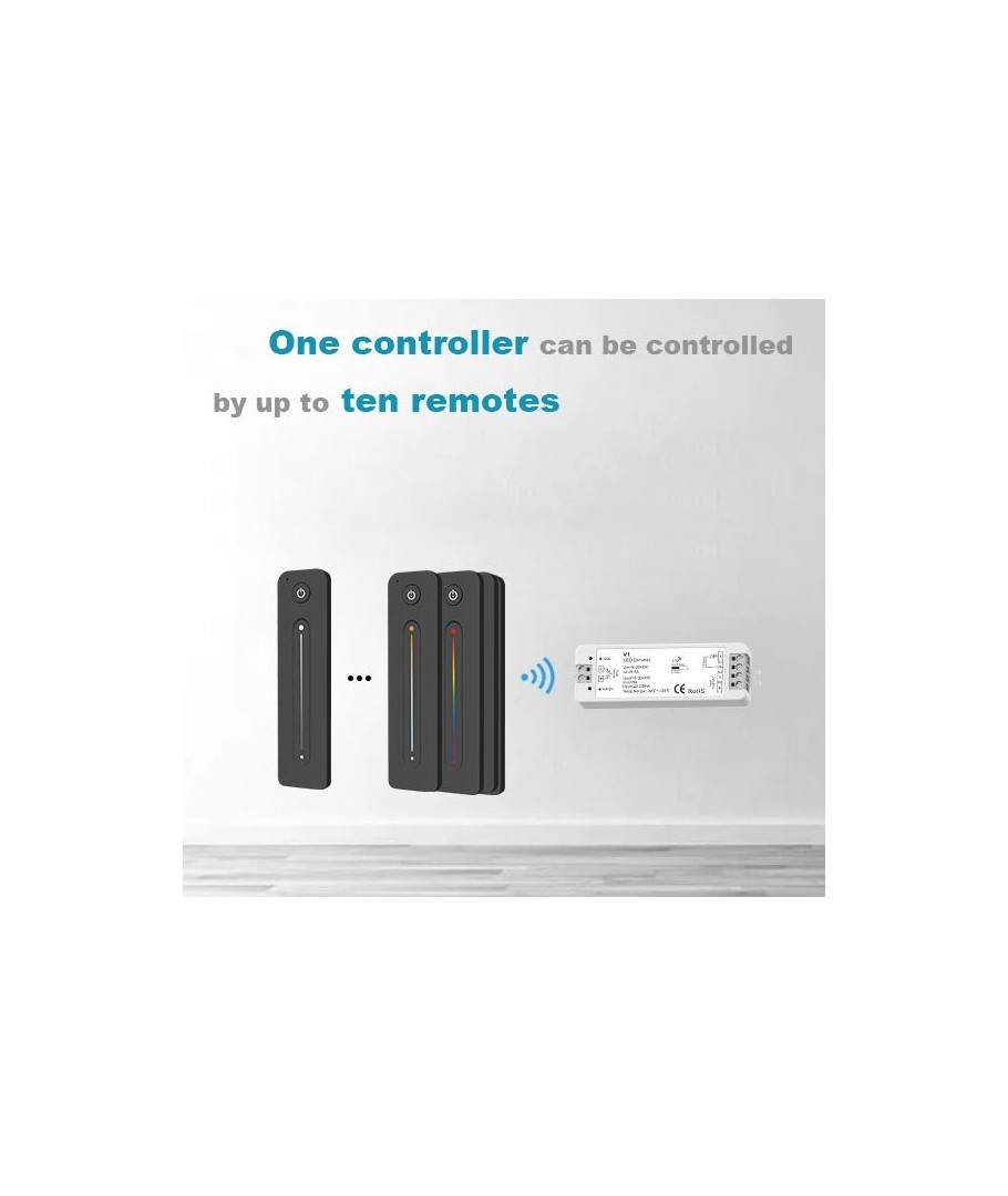 Styr 12V, 24V, 230V & dæmpning, CCT, RGB – alt med samme fjernbetjening.