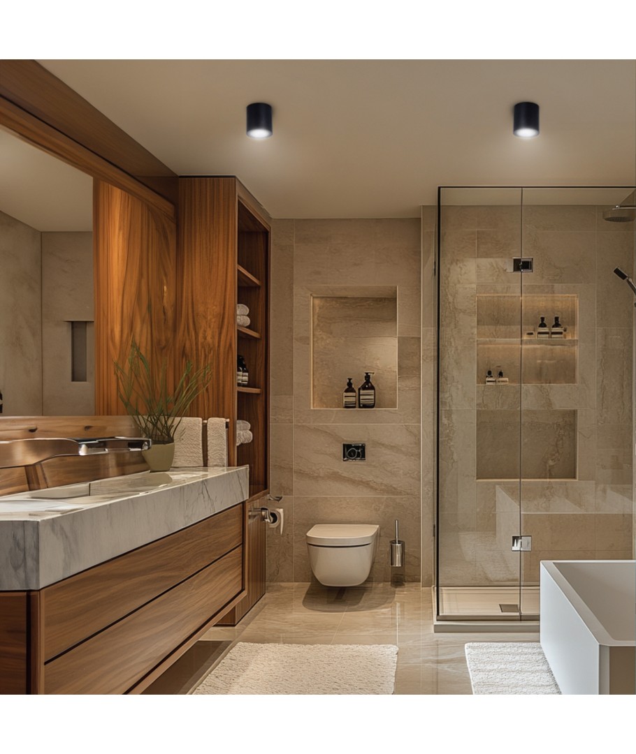 GU10 påbygningsspot i sort er en stilfuld og funktionel loftlampe, der passer perfekt til både våd- og tørzoner takket være sin IP44 klassificering.