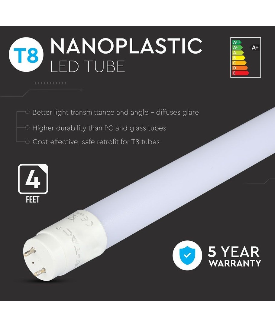 Dette 18W LED T8 rør er en moderne erstatning for et traditionelt 36W lysstofrør på 120 cm. Med Samsung LED chip teknologi og 5 års producentgaranti sikrer dette rør ikke kun effektivitet, men også pålidelighed i lang tid.