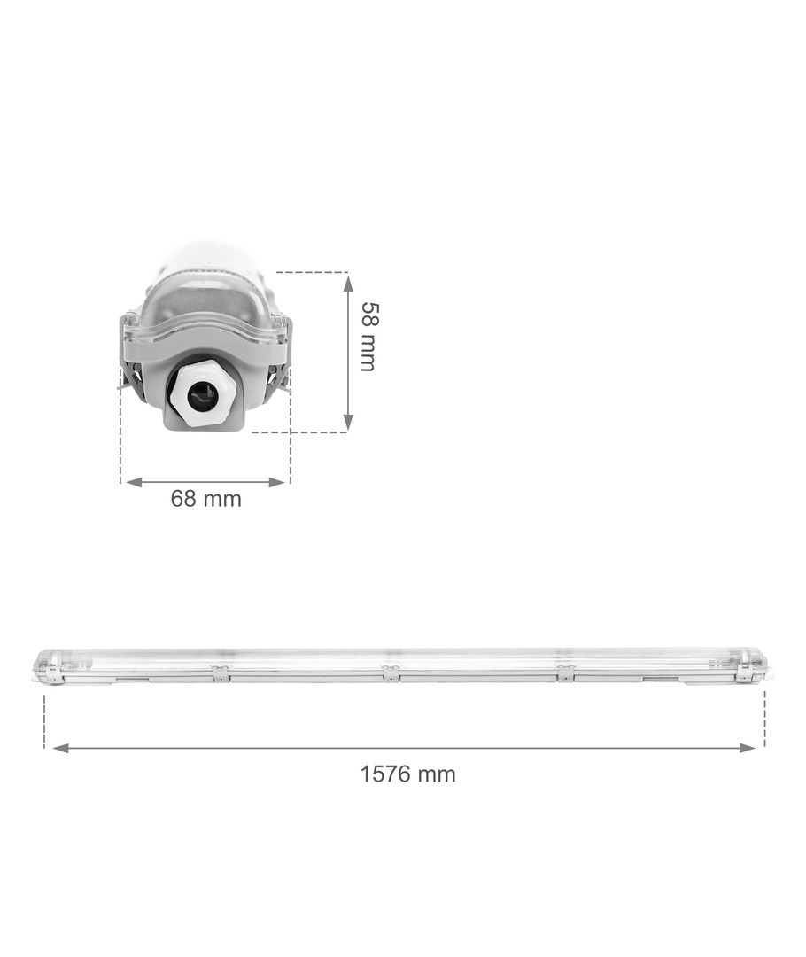 Vandtæt armatur klar til 1 x 150 cm LED rør.