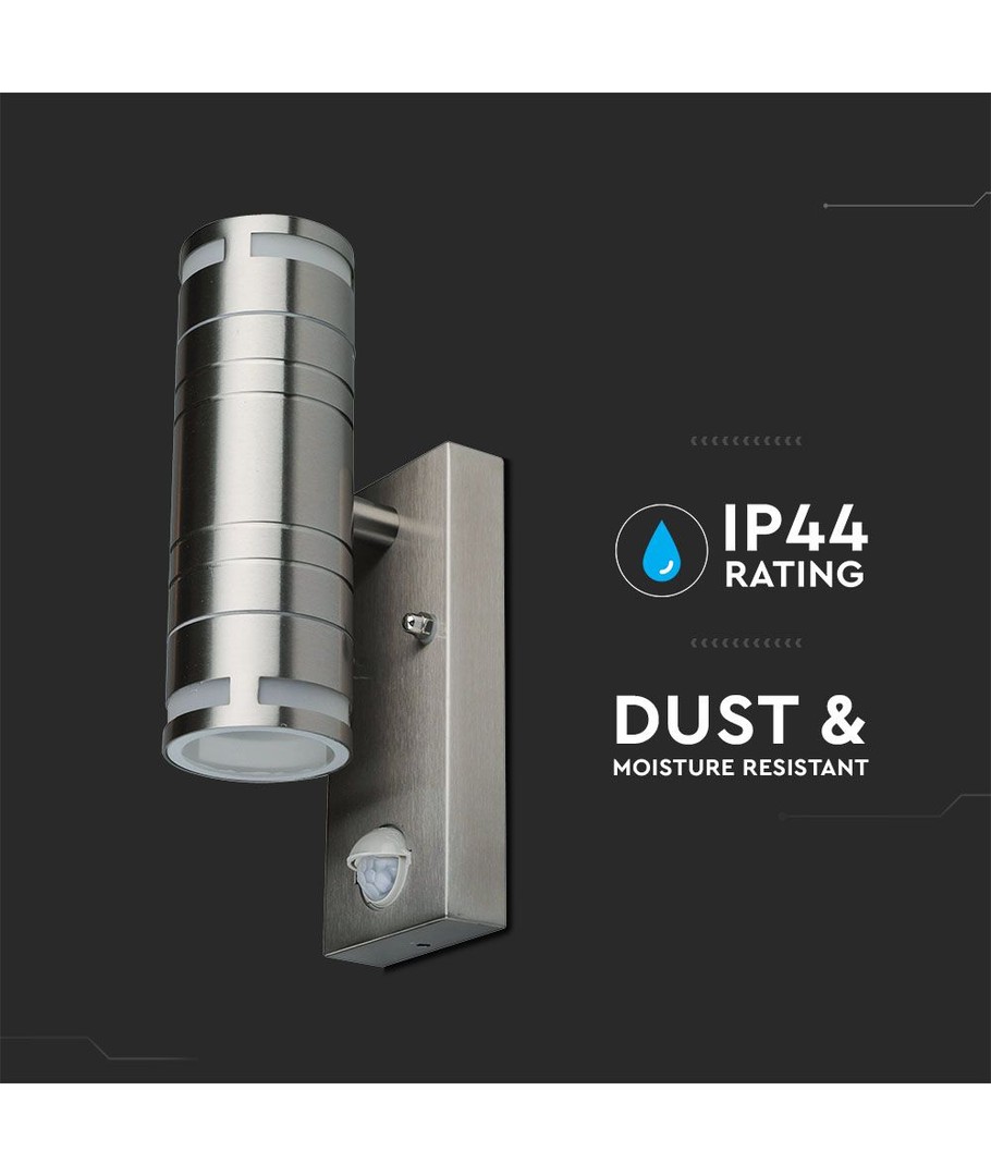 Forbedret Sikkerhed:Det op/ned lysdesign giver en unik belysningseffekt, der skaber en varm og indbydende atmosfære. Den indbyggede sensor tænder automatisk lyset, når der registreres bevægelse, hvilket øger både sikkerheden og energibesparelsen omkring dit hjem.