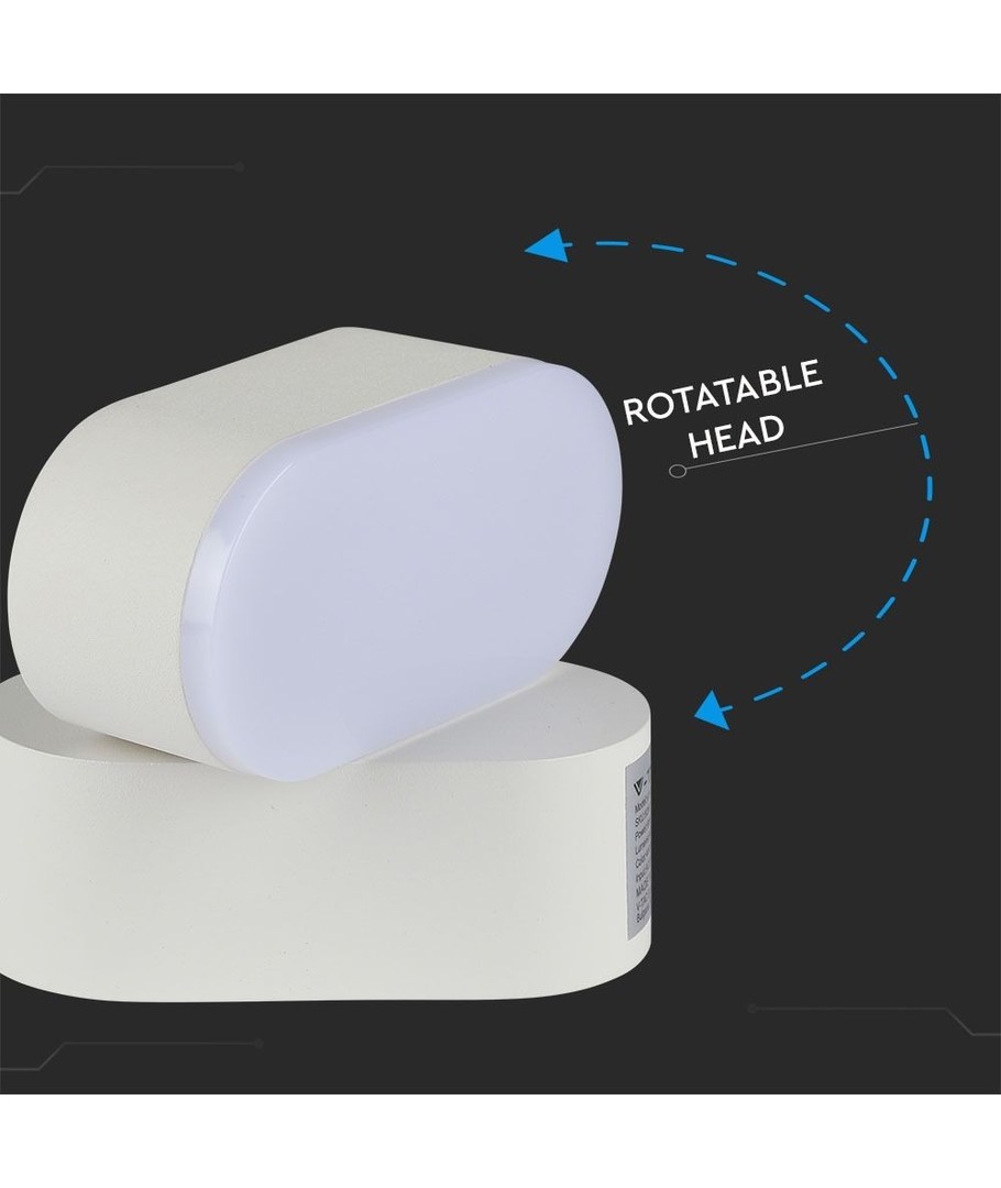 Oplev den perfekte kombination af funktionalitet og design med denne 6W LED hvid væglampe, ideel til udendørs brug. Takket være dens elegante ovale form og roterbare design, som kan drejes op til 350 grader, kan du nemt justere lyset efter dine behov.