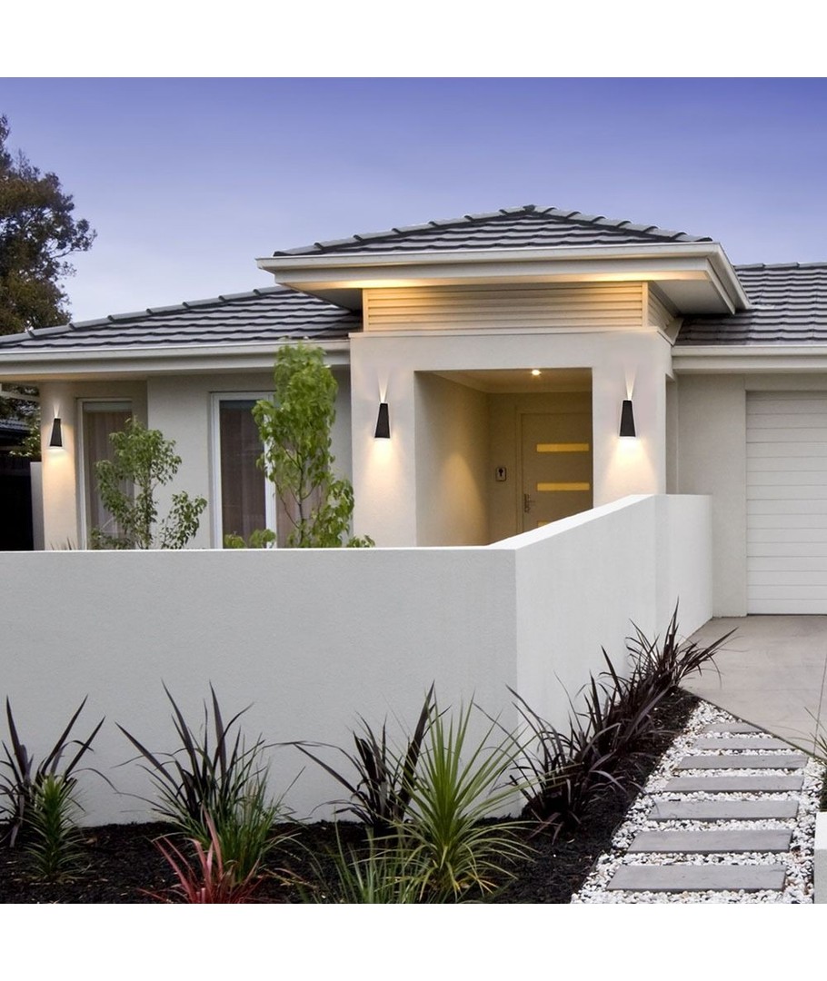 Med en kompakt størrelse på 90 x 200 x 90 mm, passer lampen diskret ind på enhver udendørs væg og tilføjer et elegant touch til din boligindretning.