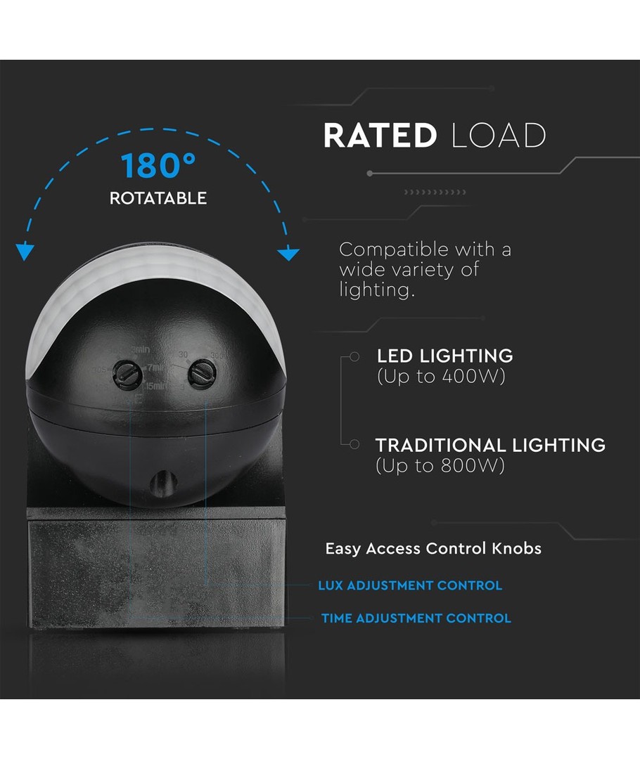 Opdag den alsidige V-Tac bevægelsessensor med bevægelig hoved, ideel til LED-belysning udendørs og designet til at give pålidelig detektion og sikkerhed.