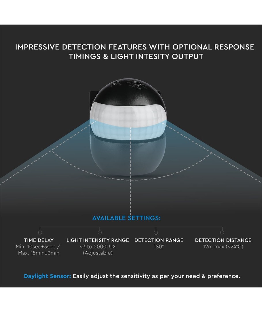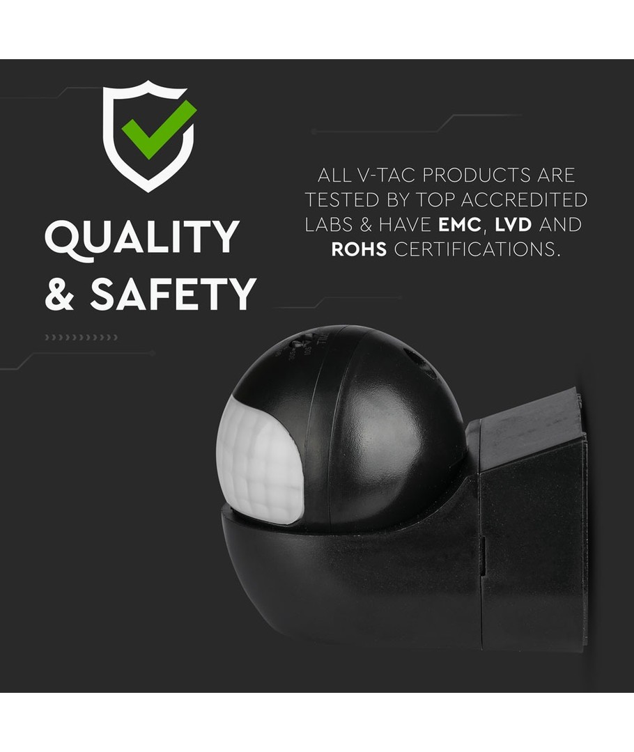 V-Tac bevægelsessensoren kombinerer funktionalitet med stil og er det perfekte valg for dem, der ønsker effektiv og pålidelig udendørs belysning.