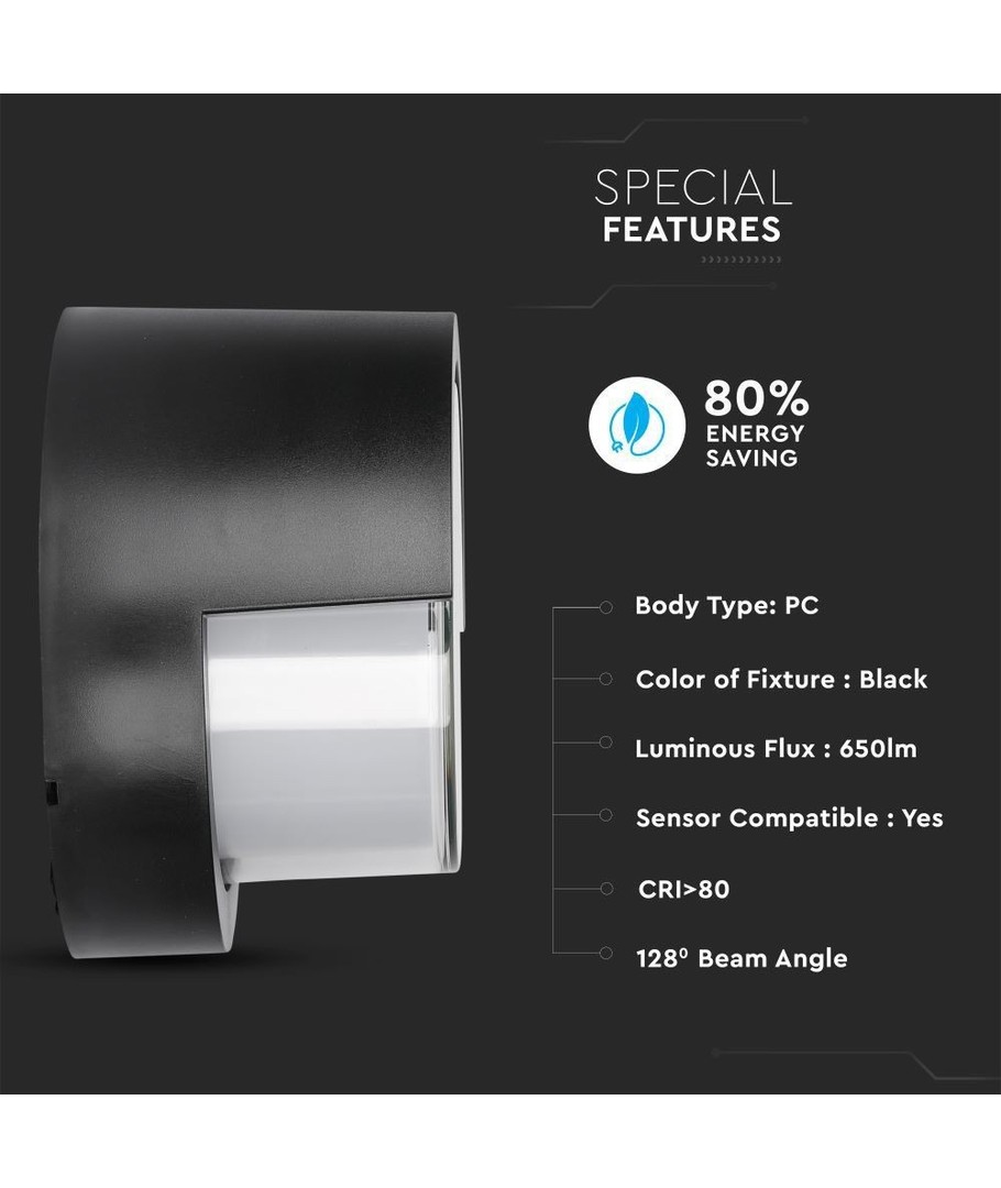 Oplev en kombination af stil og ydeevne med denne 12W LED væglampe. Designet i en tidløs rund form og klassisk sort farve, passer lampen perfekt ind i enhver udendørs indretning.