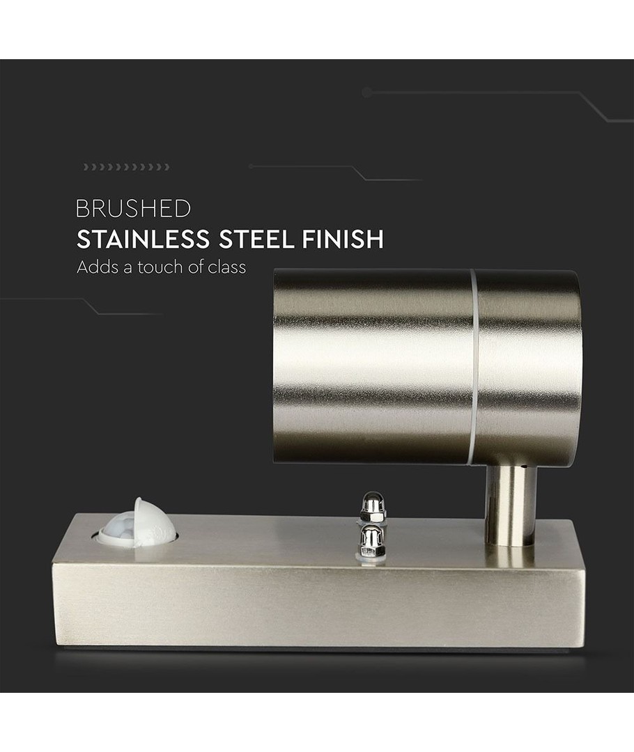 Skab sikkerhed og elegance ved din indgang eller udendørsområde med denne stilfulde GU10 væglampe. Designet i rustfrit stål sikrer ikke kun en moderne æstetik, men også holdbarhed mod vejrets påvirkninger.