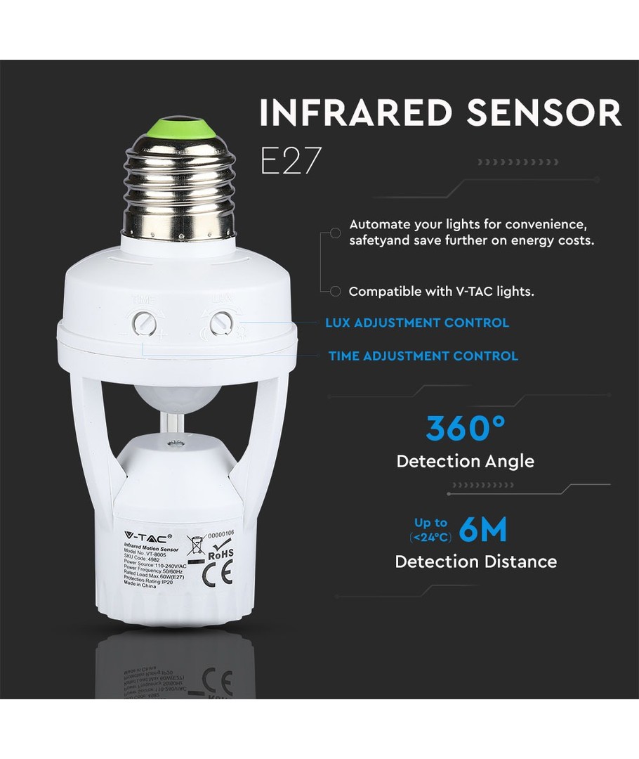 | Yderligere bemærkninger | Sensor type: Infrared. Sensor angle: 360. Sensor distance: Max 6m( |
